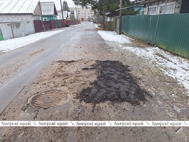 Улица «40 лет БССР» ещё две недели назад приветствовала жителей ограждающими вешками посреди дороги и валяющимися обломками асфальтобетонного покрытия дороги, которые оставили на проезжей части в результате ликвидации порыва специалисты коммунальной службы. Тема бесхозяйственности была поднята на страницах районки. Недавно мусор специалисты лоевского филиала «Речицаводоканал» убрали, провал подсыпали и разровняли насыпь. В итоге ситуацию, угрожающую безопасности прохожих, особенно в тёмное время суток, исправили.