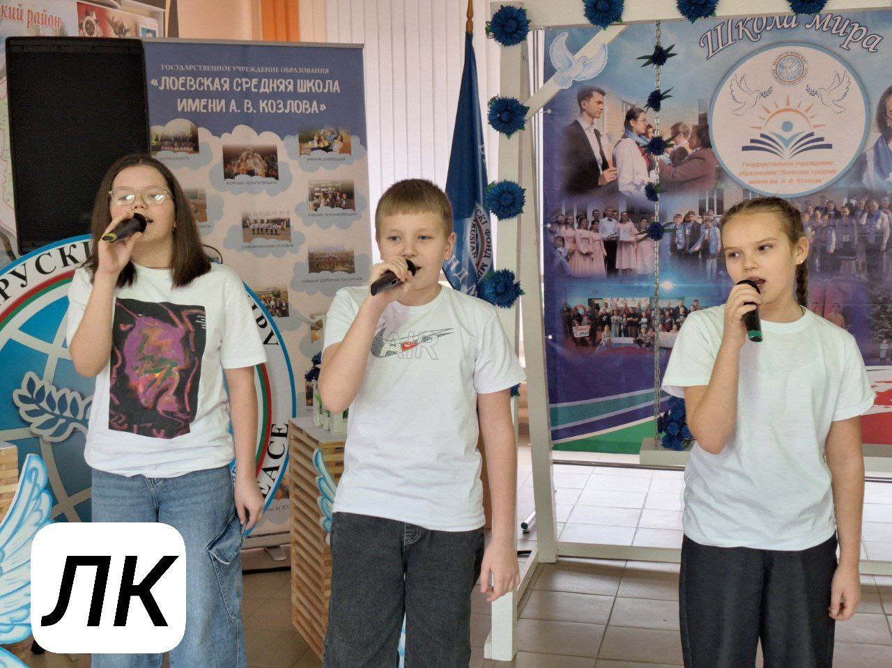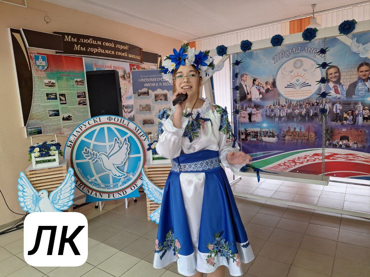 На каждом участке царит праздничное настроение. Его избирателям дарят самодеятельные артисты Лоевщины и детские творческие коллективы. В кадре юные таланты средней школы им. А.В. Козлова.