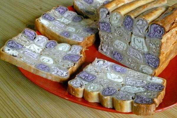 Немного фантазии и из тонких блинов и творога получится очень интересный пирог, особенно, если творожную начинку подкрасить джемом. Ингредиенты Для блинов: Молоко – 500