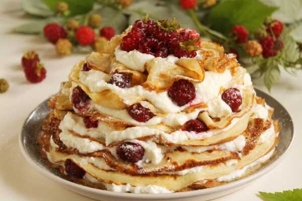 Блинный торт с малиной