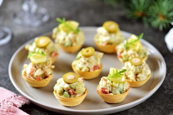 Салат с авокадо и креветками в тарталетках
