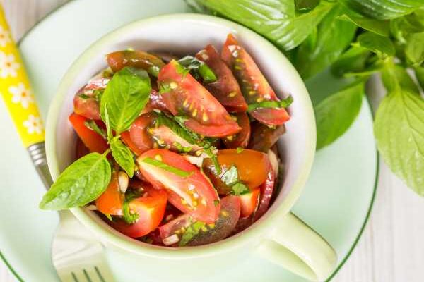 Салат из помидоров с сахаром и уксусом готовится просто и быстро! Его можно есть сразу, но еще вкуснее будет, если убрать его в холодильник,