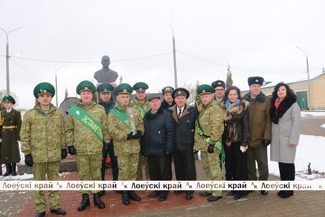 Память павших героев- освободителей присутствующие почтили минутной молчания. К подножию памятника Героя Советского Союза Николая Сушанова, чье имя гордо носит пограничная комендатура «Лоев», возложили цветы и венки.