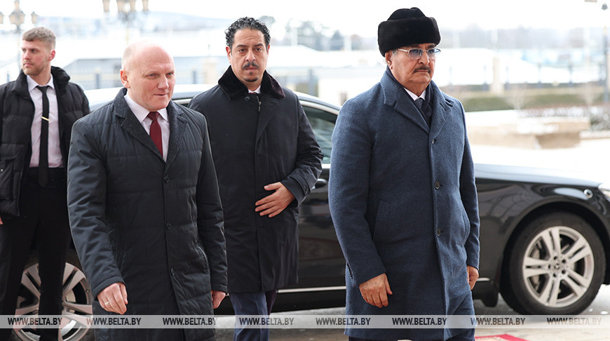 Фельдмаршал и верховный главнокомандующий Ливийской национальной армией Халифа Белкасим Хафтар прибыл во Дворец Независимости на встречу с Президентом Беларуси Александром Лукашенко.