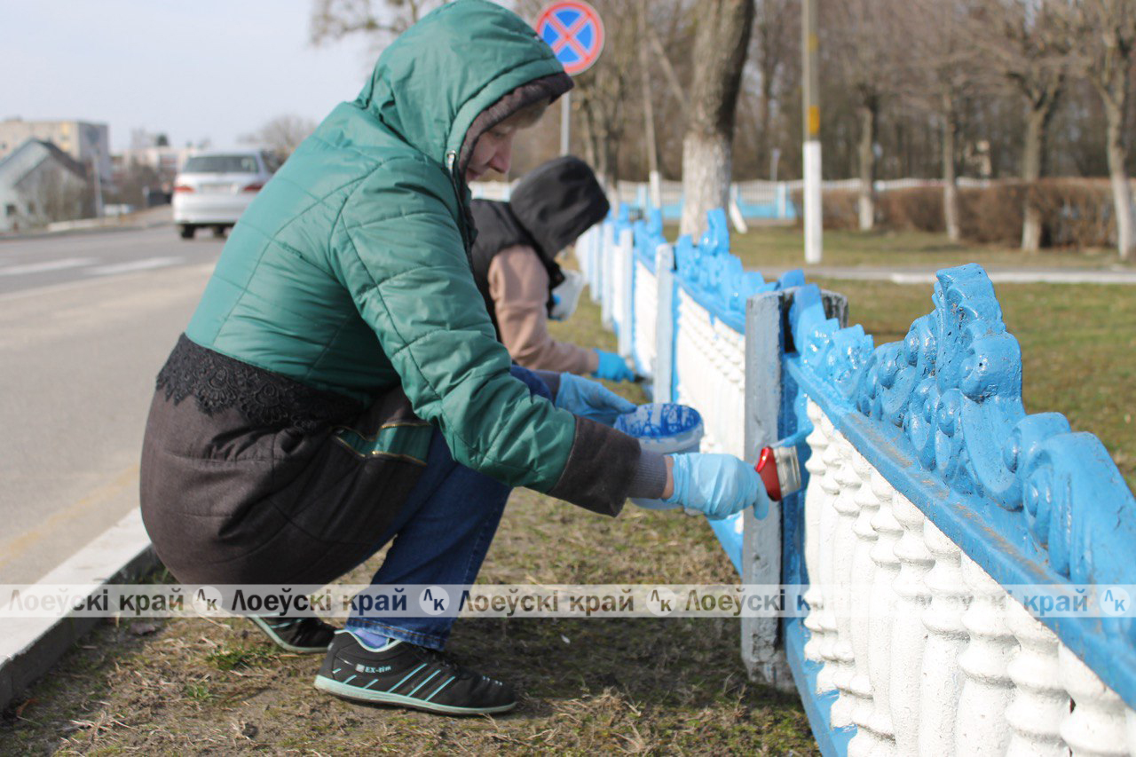 ??Вооружившись лопатами, метлами и граблями, лоевчане работают на закрепленных территориях. Одни вырубают древесно-кустарниковую растительность, другие занимаются санитарной уборкой, кто-то — покраской.