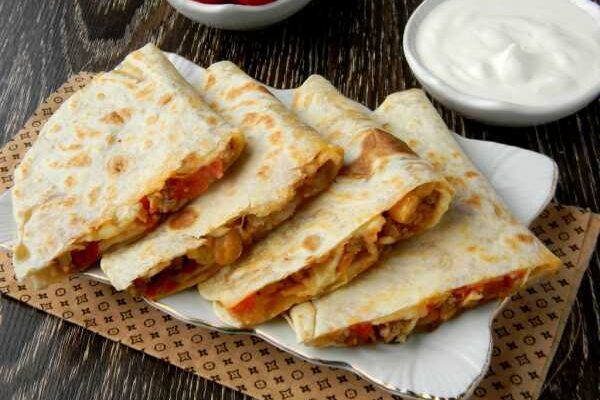 Ингредиенты Тортилья — 6 шт. Сыр — 150 г Фарш мясной — 350 г Фасоль консервированная — 150 г Помидоры в собственном соку —