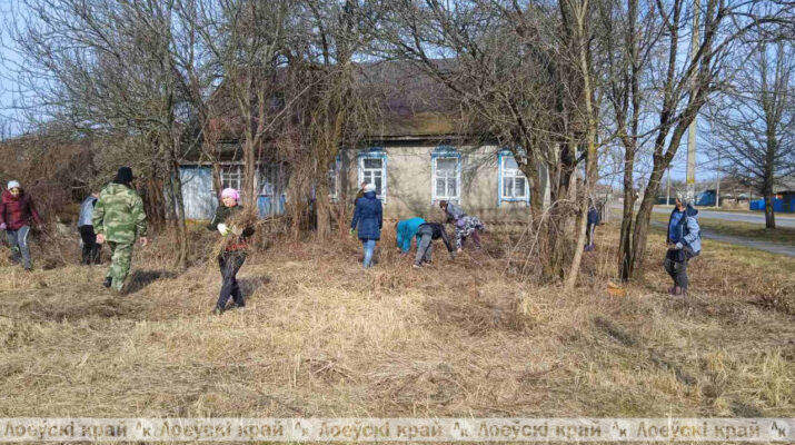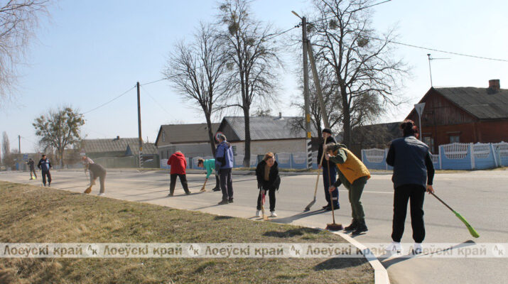 ??Вооружившись лопатами, метлами и граблями, лоевчане работают на закрепленных территориях. Одни вырубают древесно-кустарниковую растительность, другие занимаются санитарной уборкой, кто-то — покраской.Все трудятся сообща и