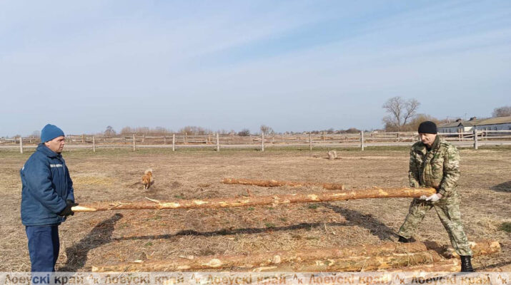Трудовой десант под руководством первого заместителя райисполкома — начальника управления сельского хозяйства и продовольствия Сергея Демиденко наводит порядок на территории КСУП «Бывальки»