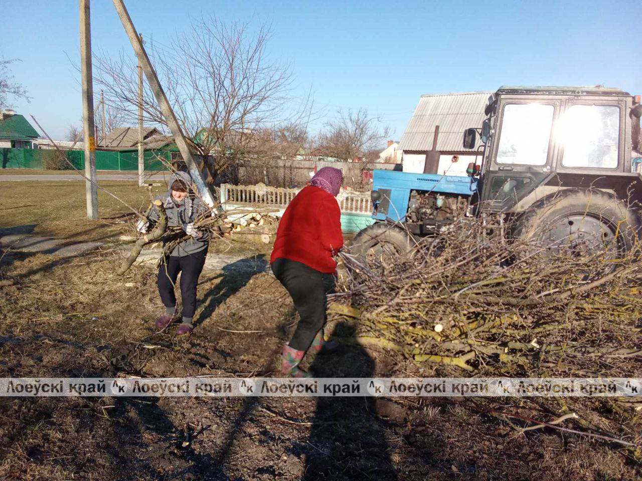 Эстафету добрых дел подхватили в Страдубском сельсовете. Местные жители, работники Совета, представители трудовых коллективов сегодня работают на закреплённых территориях: убирают ветки от срезанных деревьев в Страдубке, наводят порядок на памятнике в Чаплине, демонтируют обветшавший забор в Переделке.