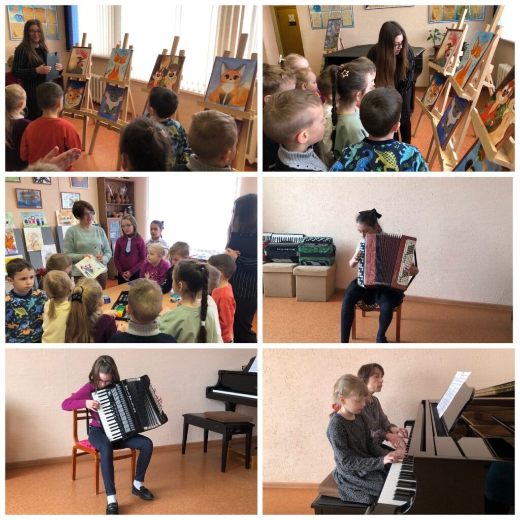 Также ребятишки познакомились с музыкальными инструментами и их звучанием в исполнении юных музыкантов: Алины Кубасовой, Златы Комиссаровой, ансамбля в составе Веры Саманчук и педагога по классу фортепиано Екатерины Кадощенко.