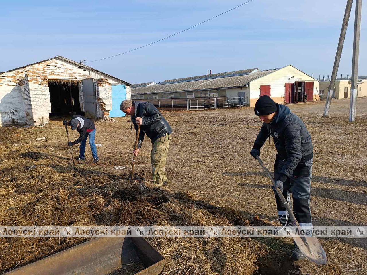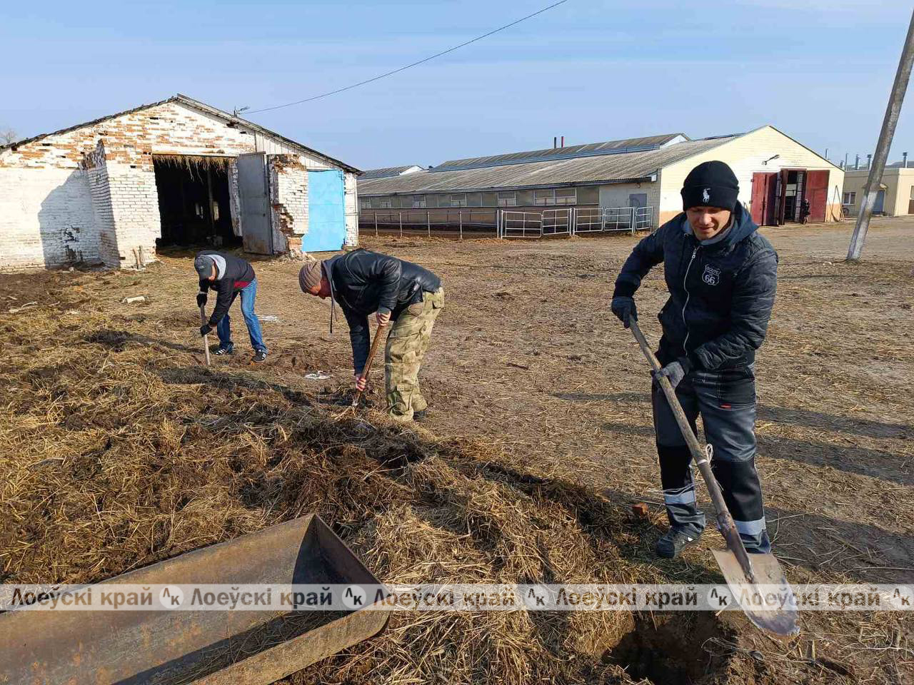 Трудовой десант под руководством первого заместителя райисполкома — начальника управления сельского хозяйства и продовольствия Сергея Демиденко наводит порядок на территории КСУП «Бывальки»