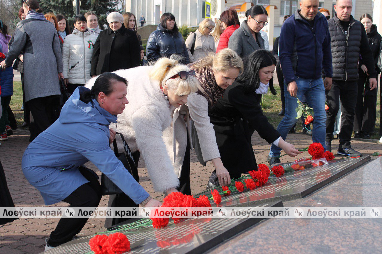 Представили учреждений, предприятий и организаций, общественных объединений, силовых структур, молодежь собрались у мемориала, чтобы почтить минутой молчания память погибших. К подножию памятника легли цветы — символ скорби и вечной памяти о невинных жертвах.