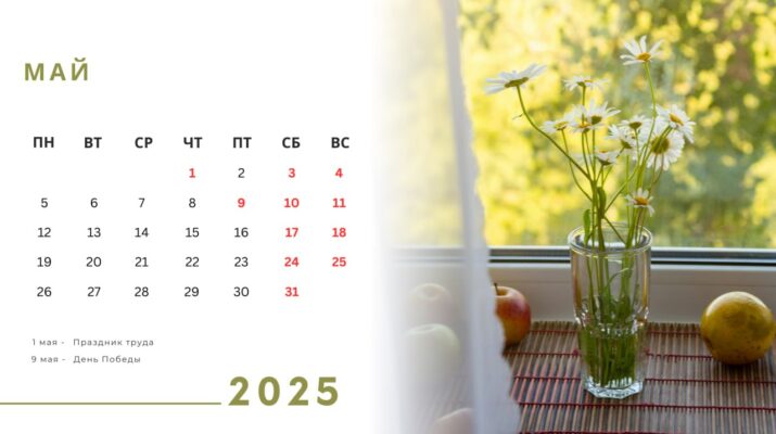 На май выпадает 2 праздничных дня Праздник труда (1 мая) и День Победы (9 мая). Эти даты в нашей стране признаны официальными выходными. ?В