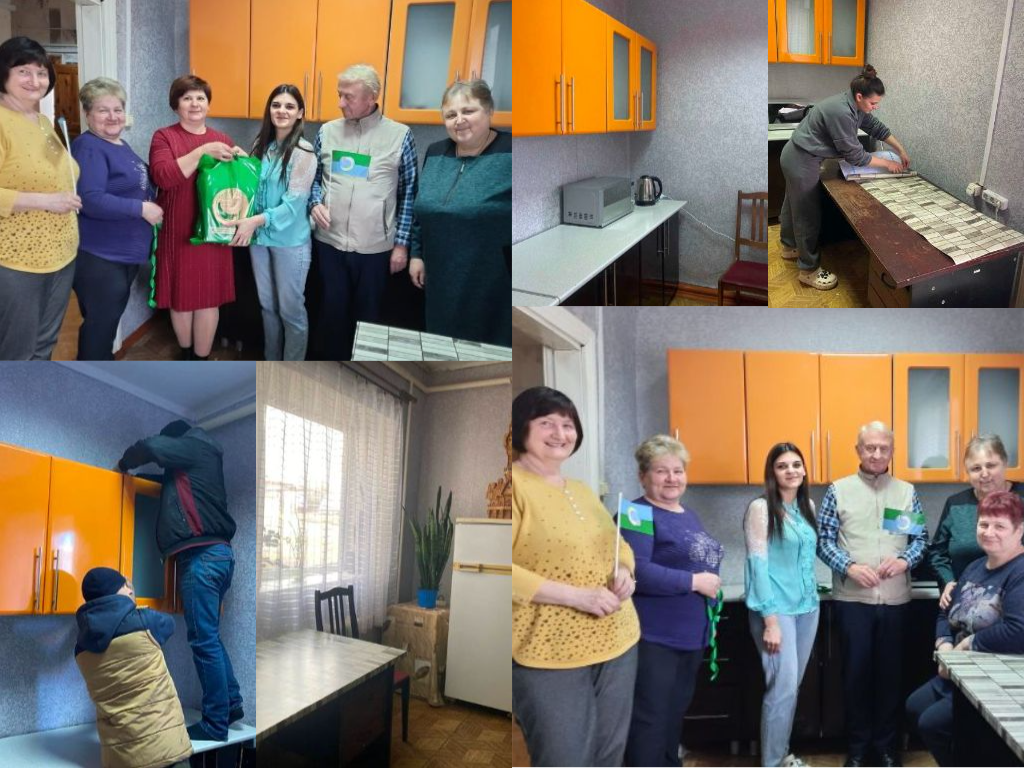 В помещении, предназначенном для принятия пищи, были покрашены потолки, переклеены обои, произведен настил нового линолеума. Нанимателем была приобретена кухонная зона, которую с легкостью установили на место предназначения. Обновили мебель, бывшую в наличии. Нарядность и уют в помещении создали белоснежные занавески. Вот и наступил торжественный момент открытия обновленного бытового помещения.
