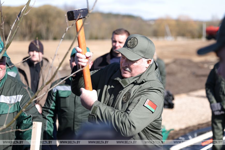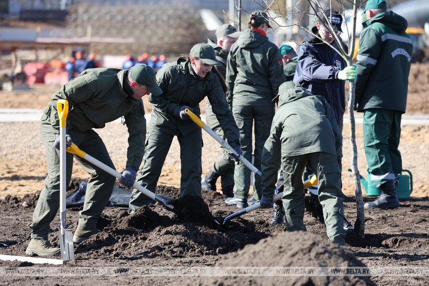 Президент на республиканском субботнике высаживает деревья в парке Народного единства. Александр Лукашенко вместе с бригадами студенческой молодежи высадит аллею из 80 деревьев, символизирующих 80 юбилейных лет, прошедших с Победы в Великой Отечественной войне.