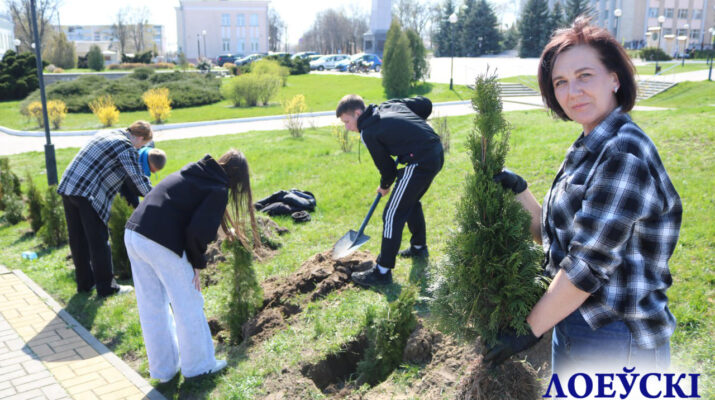 370 пирамидальных и шаровидных туй сегодня высадили лоевчане