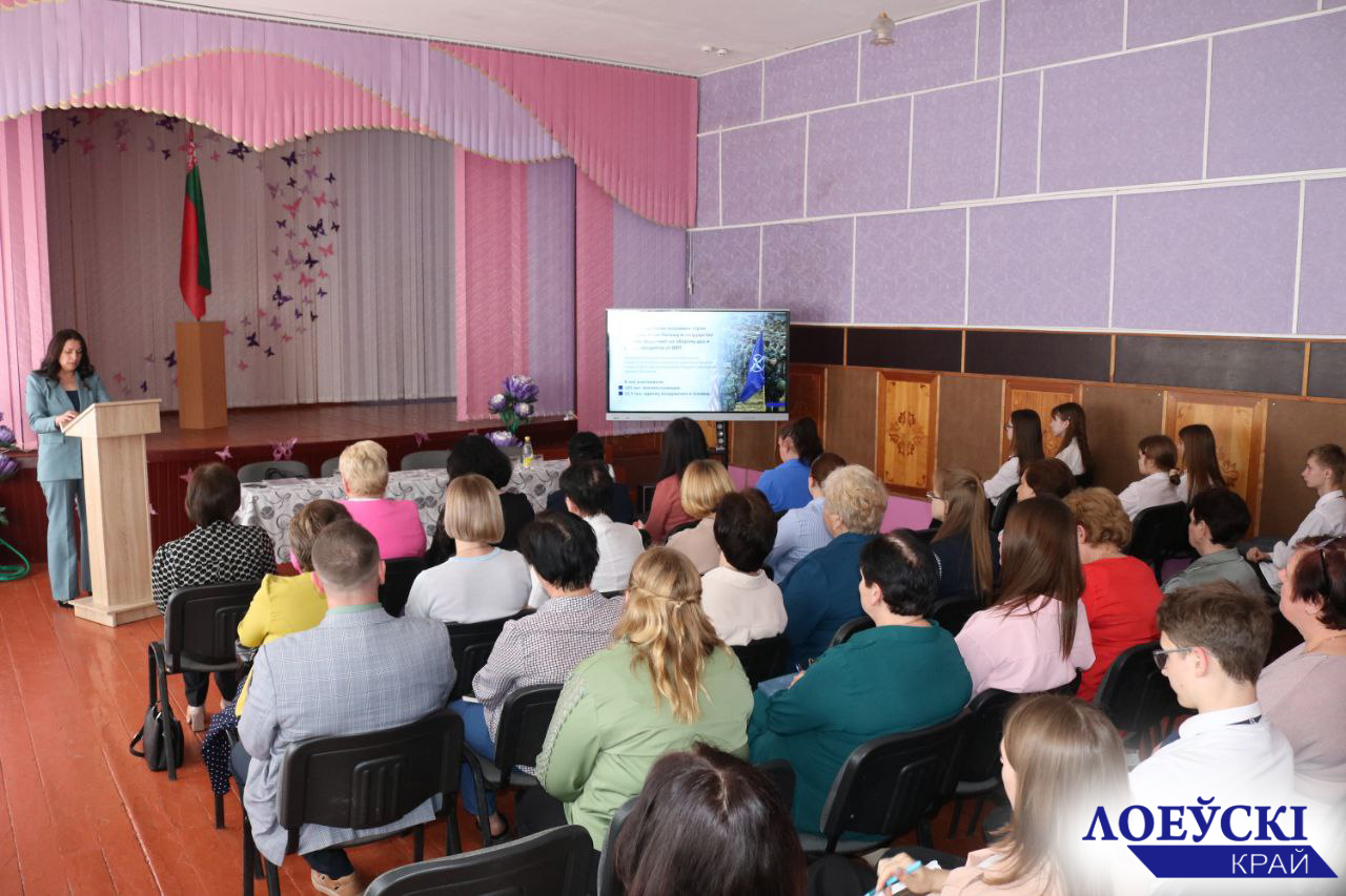 Сегодня в рамках Единого дня информирования областная информационно-пропагандистская группа под руководством председателя комитета по труду, занятости и социальной защите Гомельского облисполкома Надежды Цупа встретилась с трудовым коллективом и старшеклассниками средней школы имени А.В. Козлова. Темой для открытого разговора стала юбилейная дата, к которой стрепетом относится каждый белорус — 80-летие Победы советского народа в Великой Отечественной войне.