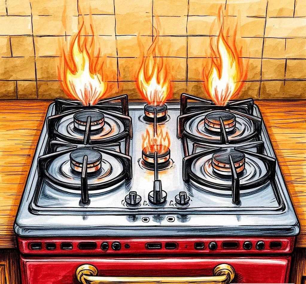▫️Нельзя загромождать газовую плиту посторонними предметами, сушить вещи над пламенем горелок газовой плиты.
