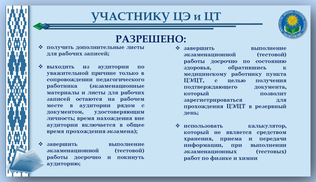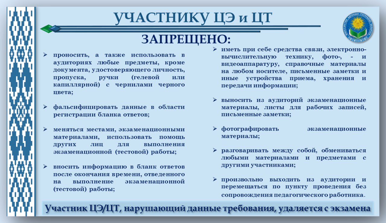 ☝️В нашей инфографике собрали всё, что нужно знать о ЦЭ и ЦТ. Особое внимание обращаем на самое необходимое для каждого участника испытаний. Здесь детально можно изучить, что разрешается, запрещается во время экзамена и тестирования. Все требования указаны выше.?