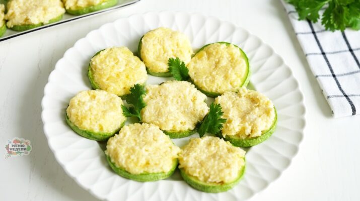 - Шаг 11 Украсить кабачки с сыром зеленью и можно подавать к столу. Приятного аппетита!