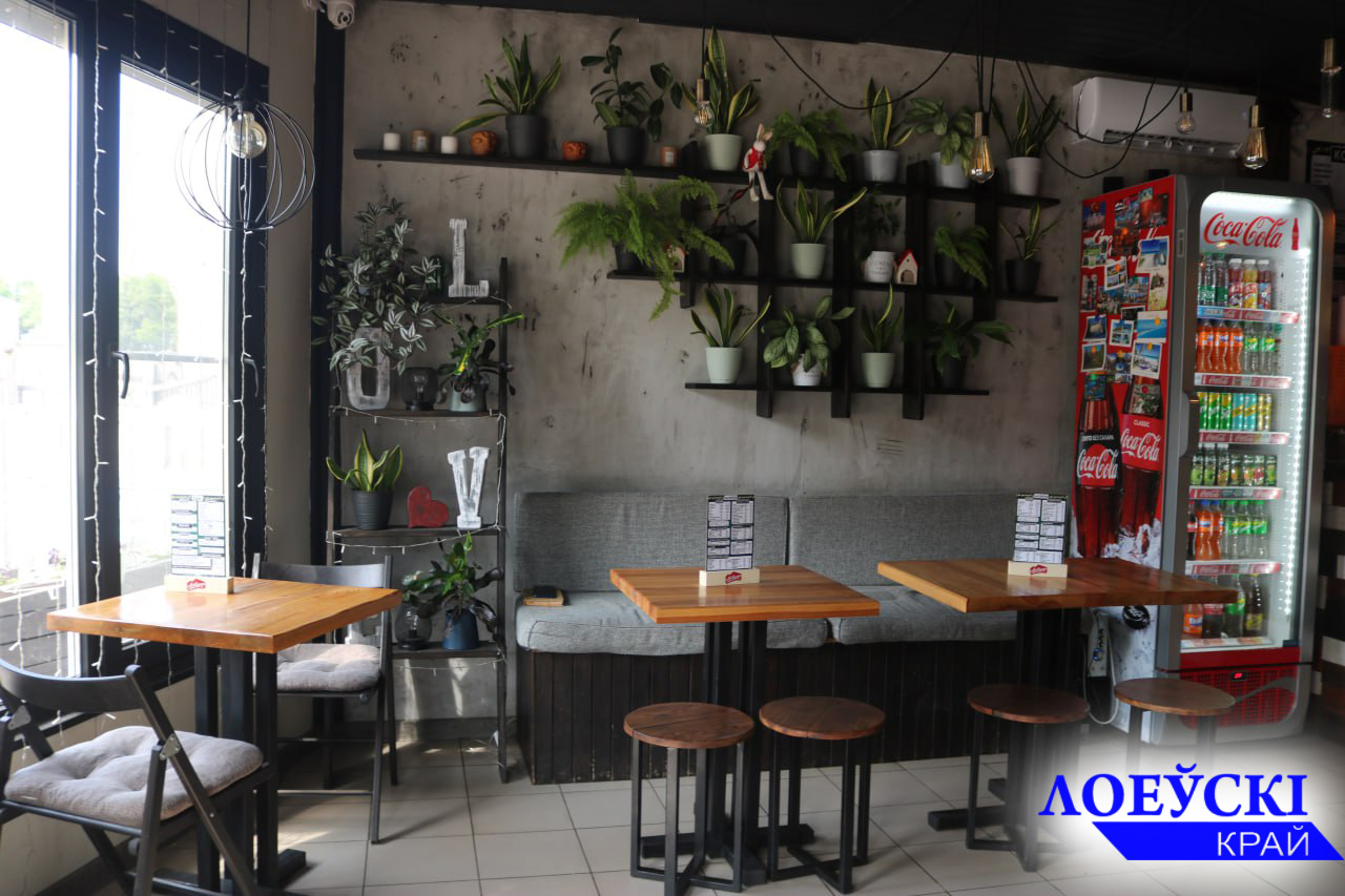 И действительно все сложилось, как пазлы мозаики. На информационных площадках Realt.by и Kуфар неоднократно «всплывали» объявления о продаже кафе в Лоеве. Хоть в сфере общественного питания владелец нынешнего заведения никогда не работал, все же решил рискнуть и попробовать себя в новом виде деятельности. Во всех начинаниях его поддерживала супруга. Вместе внесли в интерьер нотки уюта: добавили зеленую зону, которая меняет свои декорации по временам года. Обновили меню, ведь оно тогда было минимальным — кофе и десерты. Но одними пирожными и напитками посетителей не привлечешь. Поэтому владельцу пришлось ввести в ассортимент другие позиции еды, которые не потребовали серьезных финансовых вложений, но пользовались бы спросом у местных жителей. Где-то через год в кафе обустроили небольшую кухню, оснастив ее необходимым технологическим оборудованием: закупили фритюр, гриль, холодильник, электрическую печь, вытяжку, вентилятор. Вскоре в заведении появились закуски — шаурма, пицца, картошка фри, наггетсы, хот-доги, сэндвичи, крылышки в хрустящей панировке, луковые кольца и др.