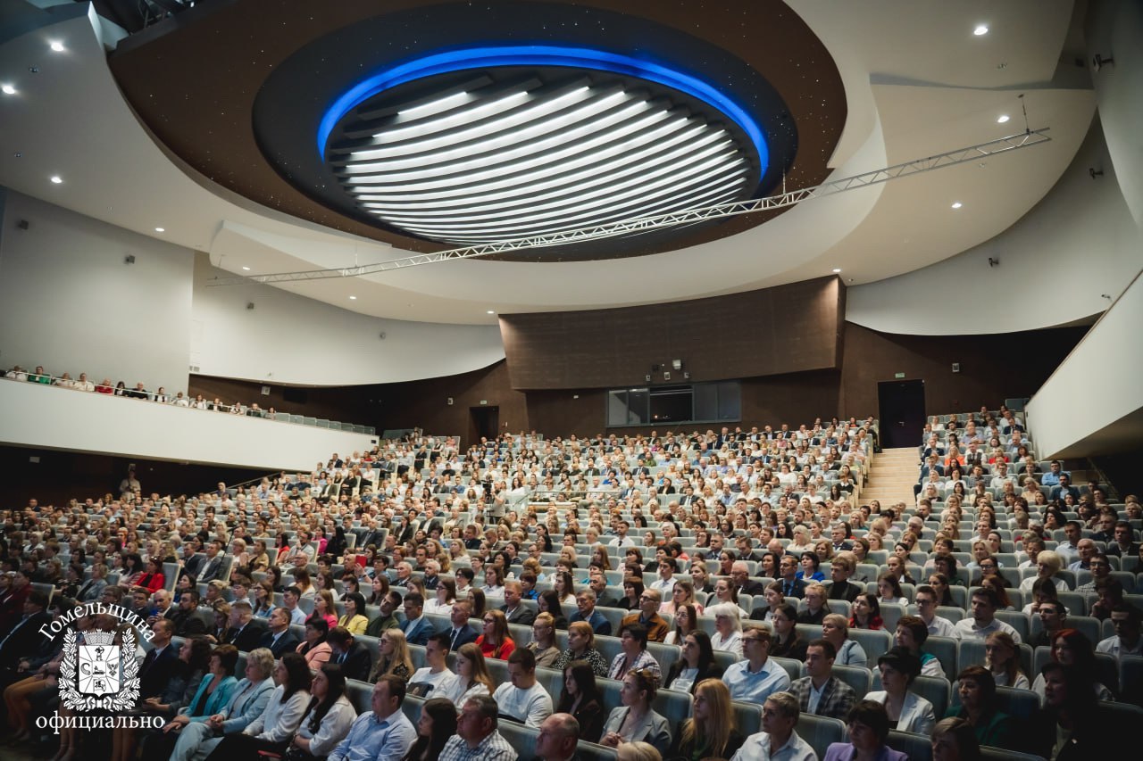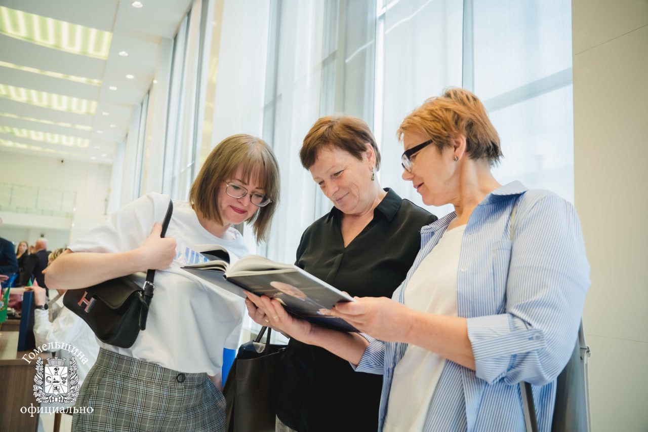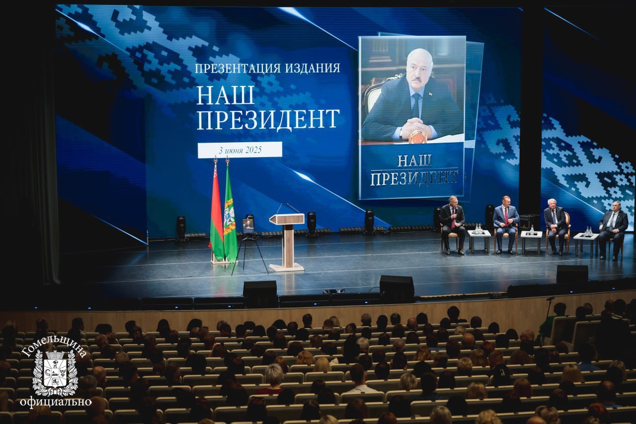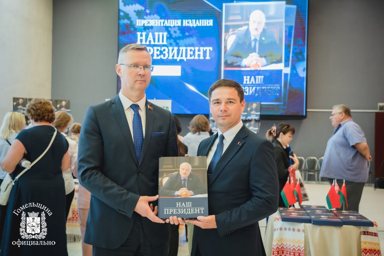 Перед презентацией в фойе развернулись тематические выставки, в том числе посвященная визитам Главы государства в районы Гомельщины.