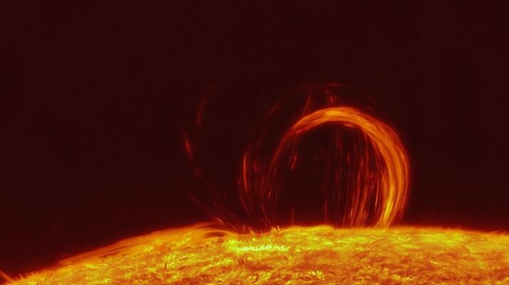Возможно, самый большой в текущем году и абсолютно точно самый эффектный выброс протуберанца произошел на Солнце сегодня с утра. В космос было выброшено волокно плазмы размером около 1 млн км, образовавшее в ходе движения нечто, похожее на крутящийся смерч из раскаленного газа.