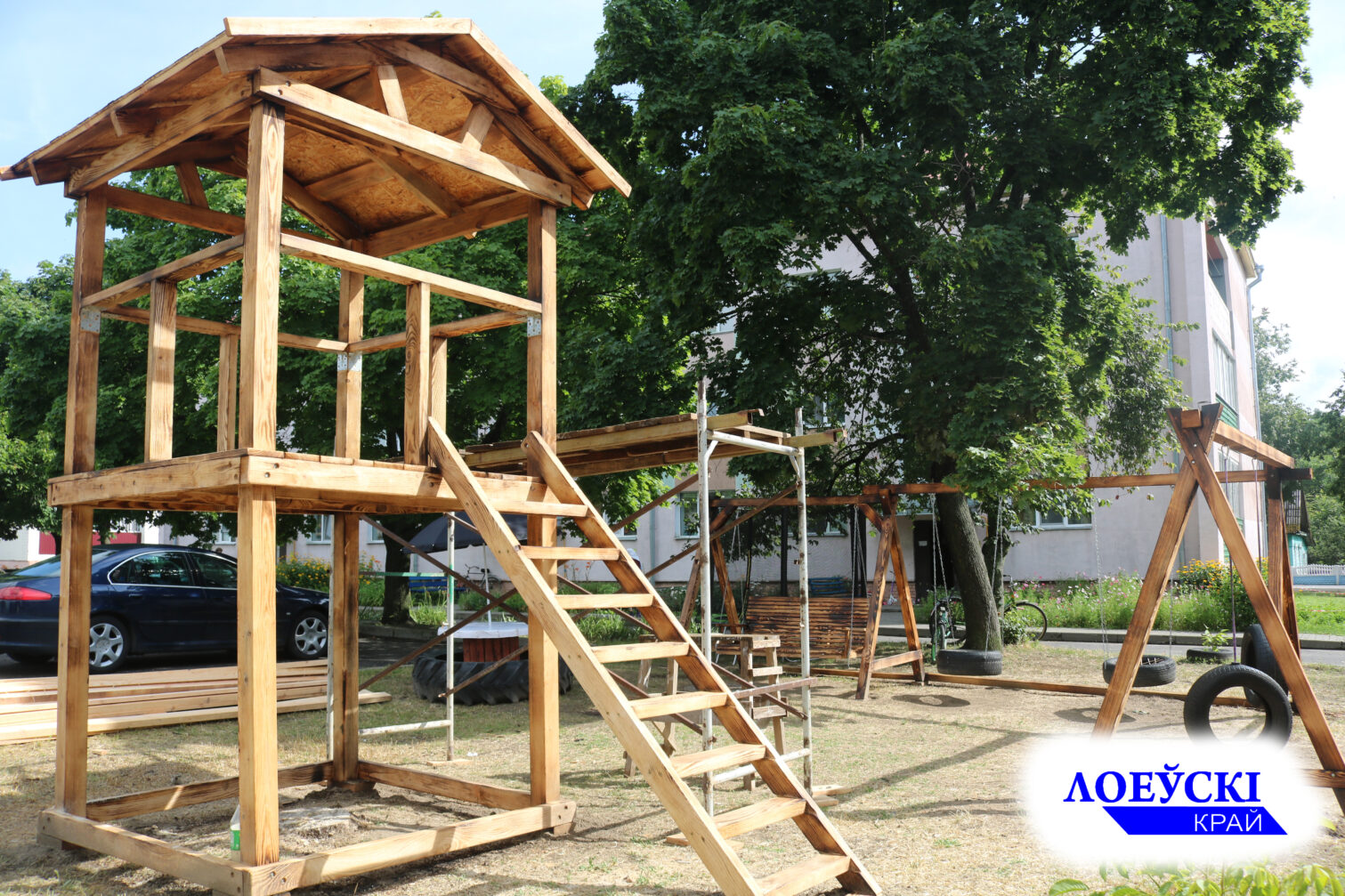 Идея мужчин создать во дворе многоэтажки игровую площадку для детей с нуля без привлечения бюджетных средств также нашла отклик в сердцах жителей окрестных многоквартирных домов (Комсомольская №4, Советская №7, 11, 13). Каждый желающий мог внести посильную денежную лепту или оказать поддержку в виде трудового десанта. Основным материалом для работы послужил пиломатериал, приобретённый в лесхозе. К монтажу конструкций подключились андрей Мельниченко, Николай Глушак и Павел Черняков. Вшестером по выходным мужчины создают островок радости и веселья для малышей. Большую помощь в обустройстве игровой площадки оказал ИП Дмитрий Крупейченко, предоставив краску и необходимые метизы.