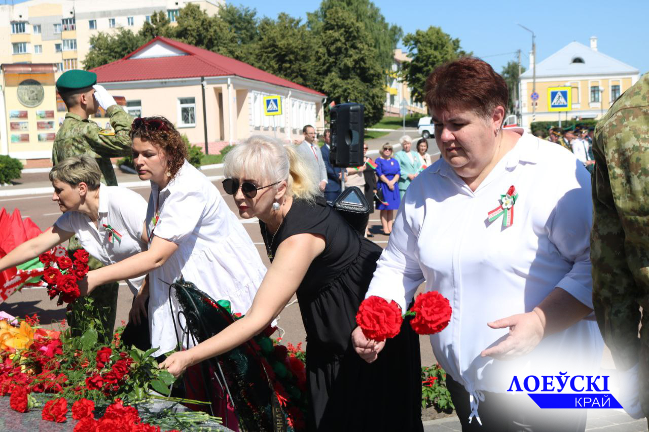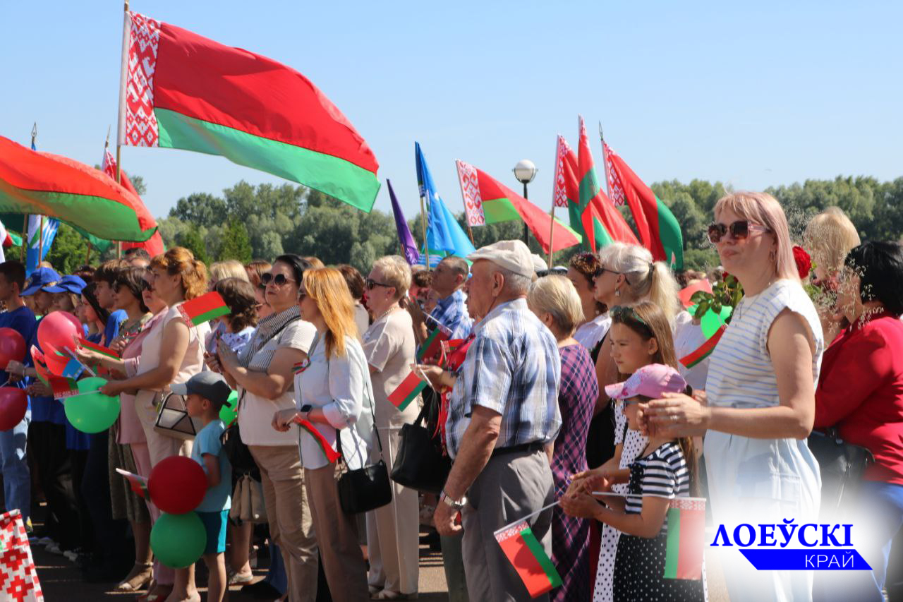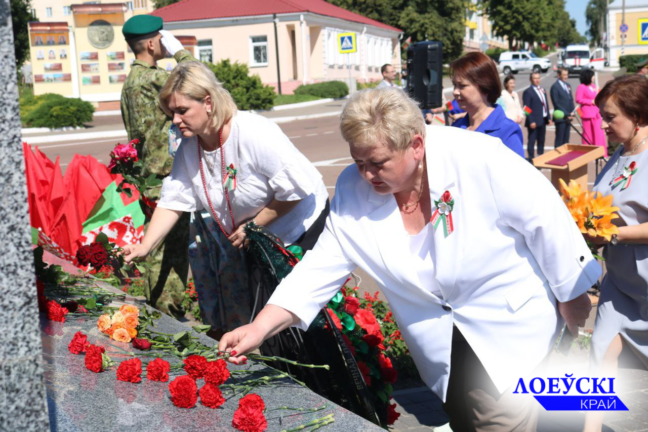 В главный праздник страны лоевчане собрались у обелиска на центральной площади горпосёлка, чтобы почтить память павших героев и возложить в их честь цветы к его подножию. Сотни земляков, активистов общественных объединений и партий пришли на праздник с флагами, улыбками и гордостью в сердце за свою свободную, процаетающую Родину. Наши кадры для тех кто не был на этом торжестве славы.
