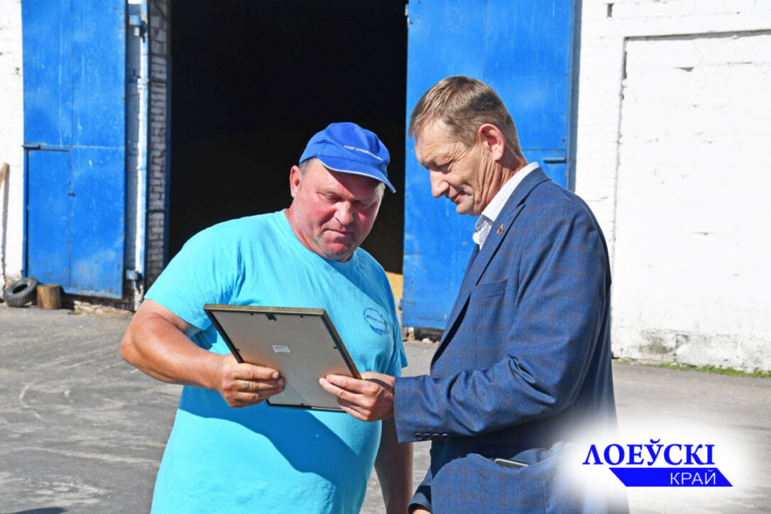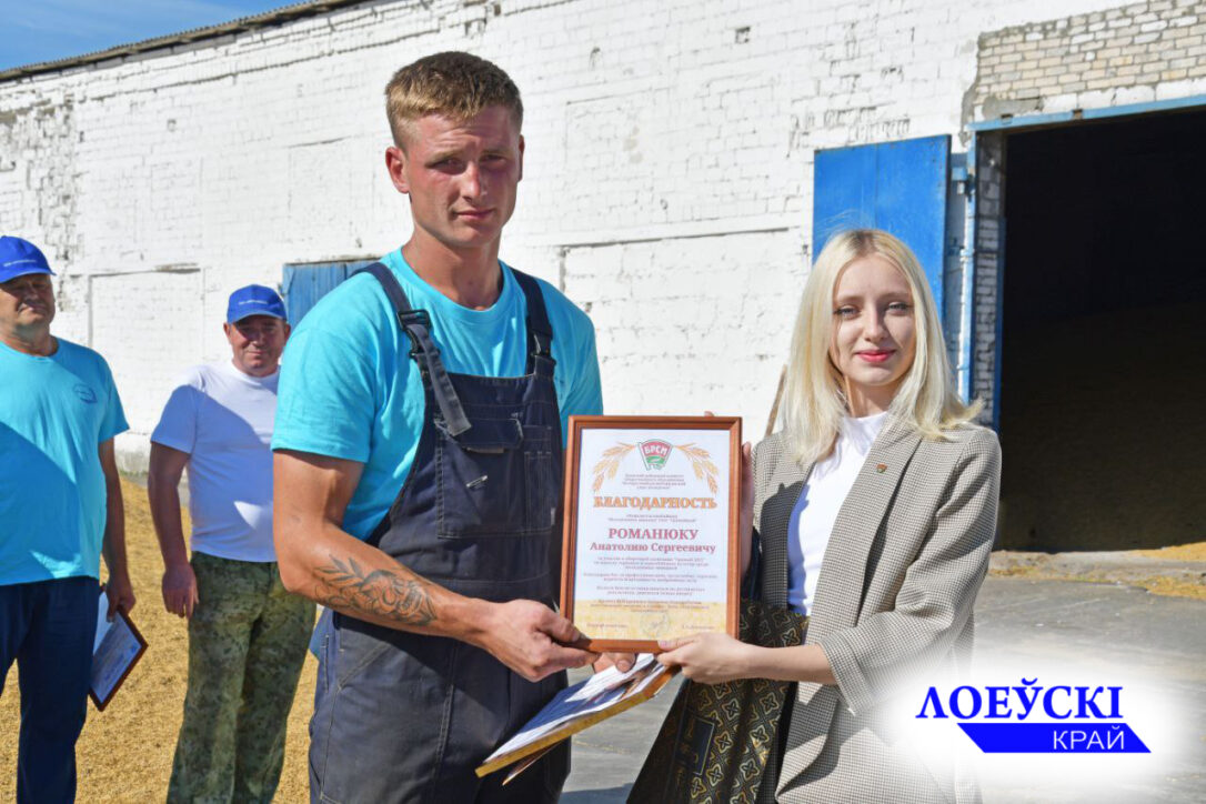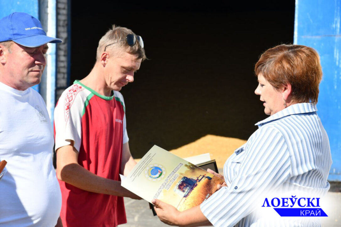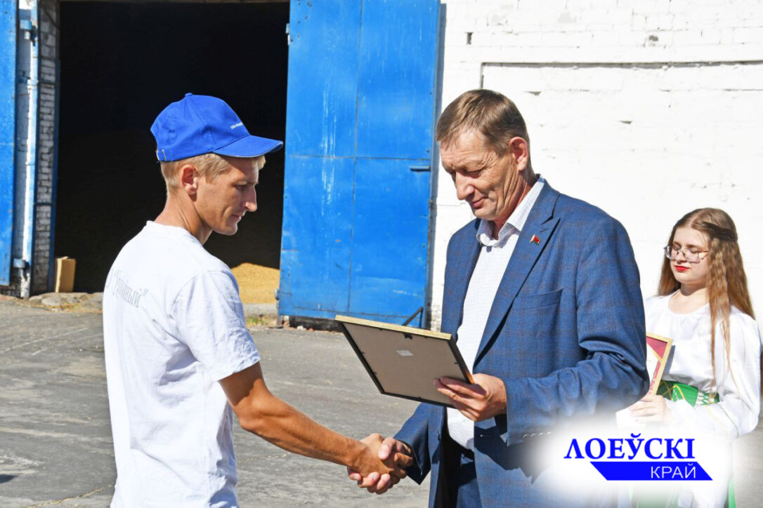 В ОАО «Урожайный» прошло торжественное награждение механизаторов, намолотивших 1000 тонн зерна и выше. Благодарственные письма и тёплые слова в адрес передовиков прозвучали от первого заместителя председателя — начальника управления сельского хозяйства и продовольствия райисполкома Сергея Демиденко.