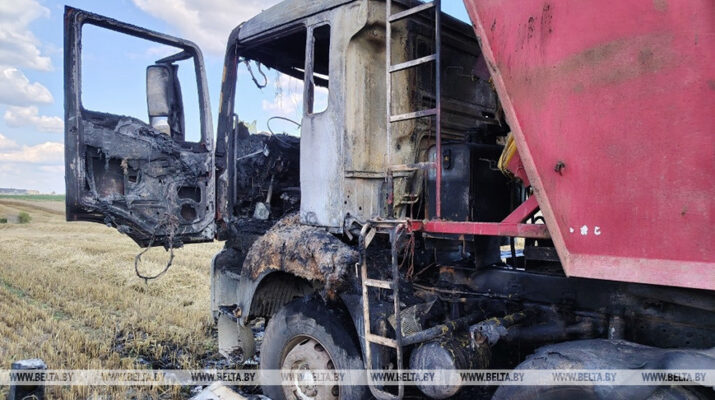 В Речицком районе в поле горел грузовик с зерном. Об этом БЕЛТА сообщили в Гомельском областном УМЧС. Инцидент произошел днем 3 августа вблизи д.