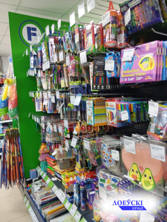 Заглянув в различные торговые точки, можно отметить довольно большое количество канцелярских товаров по абсолютно разным ценам. Например, в «Евроопте» два стеллажа отведены под школьные предметы. Из них особенно приглянулись: тонкая тетрадь всего за 20 коп., набор из двух больших ластиков за 2,39 руб., цветные карандаши (12 шт.) за 4,95 руб., тетрадь полуобщая за 1,99 руб., набор графитных карандашей (4 шт.) за 99 копеек. Хоть выбор здесь небольшой, но каждый может найти что-то для себя.