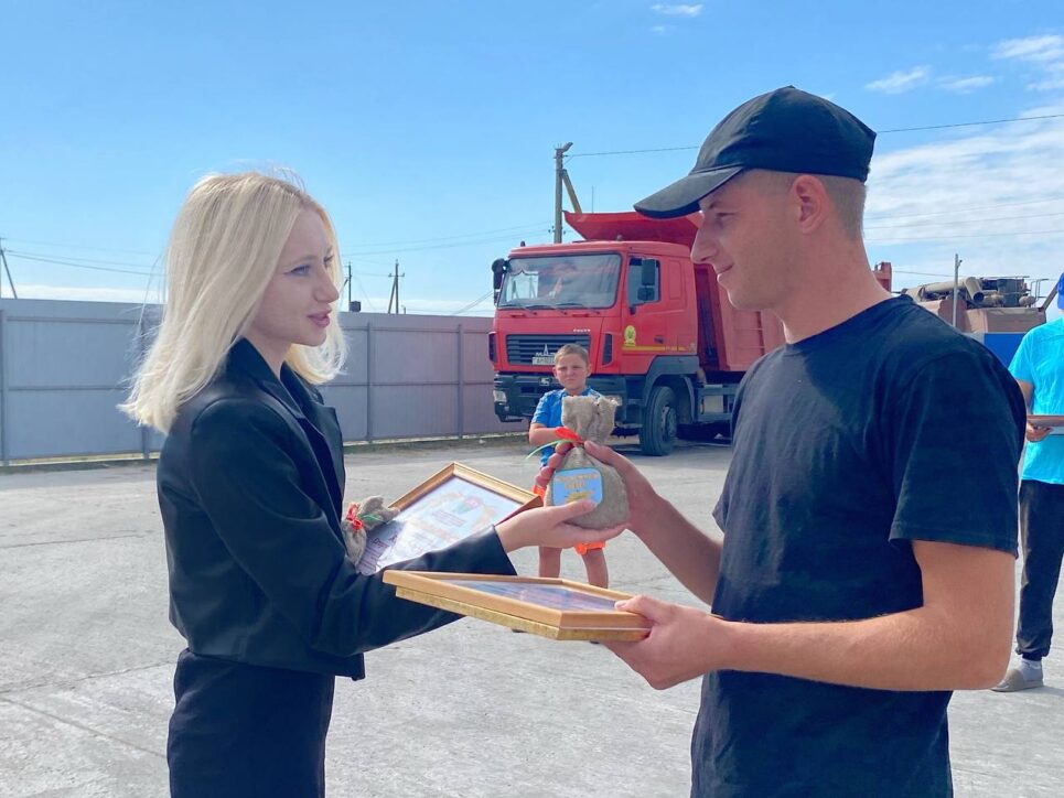 Молодёжный экипаж также поздравила, и вручила отважными и трудолюбивым парням памятные сувениры лидер молодёжного движения района Кристина Демиденко.