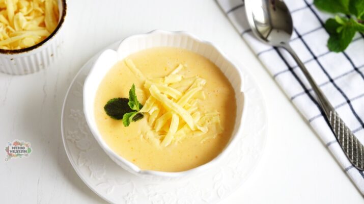 - Шаг 13 Сырный крем-суп готов.Сверху, в каждую порционную тарелку, добавить натёртый на крупной тёрке сыр.Приятного аппетита!