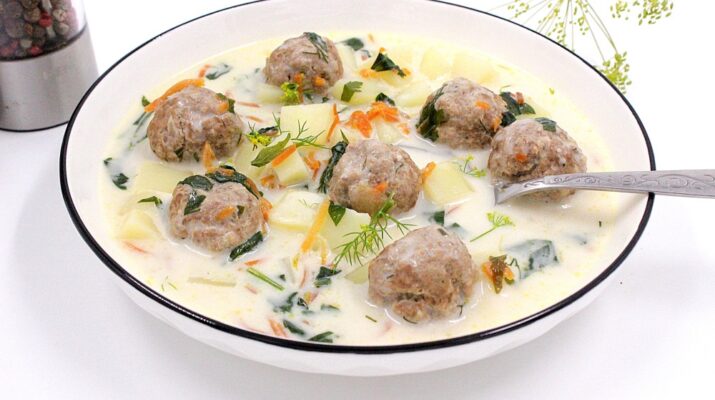 Если в вашей морозилке окажутся уже готовые фрикадельки, то это означает только одно — вы большая молодец, делаете заготовки, облегчая себе жизнь:) и суп приготовите порядком быстрее. Замороженные фрикадельки не надо размораживать, но вот время приготовления нужно будет увеличить на 5 минут.
