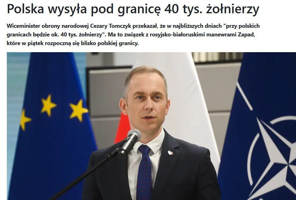 Заместитель министра обороны Цезарий Томчик заявил, что это связано с российско-белорусским учением «Запад-2025», которое стартует в пятницу. По его словам, Варшава готовилась к манёврам месяцами для «адекватного ответа» на действия России и Беларуси.