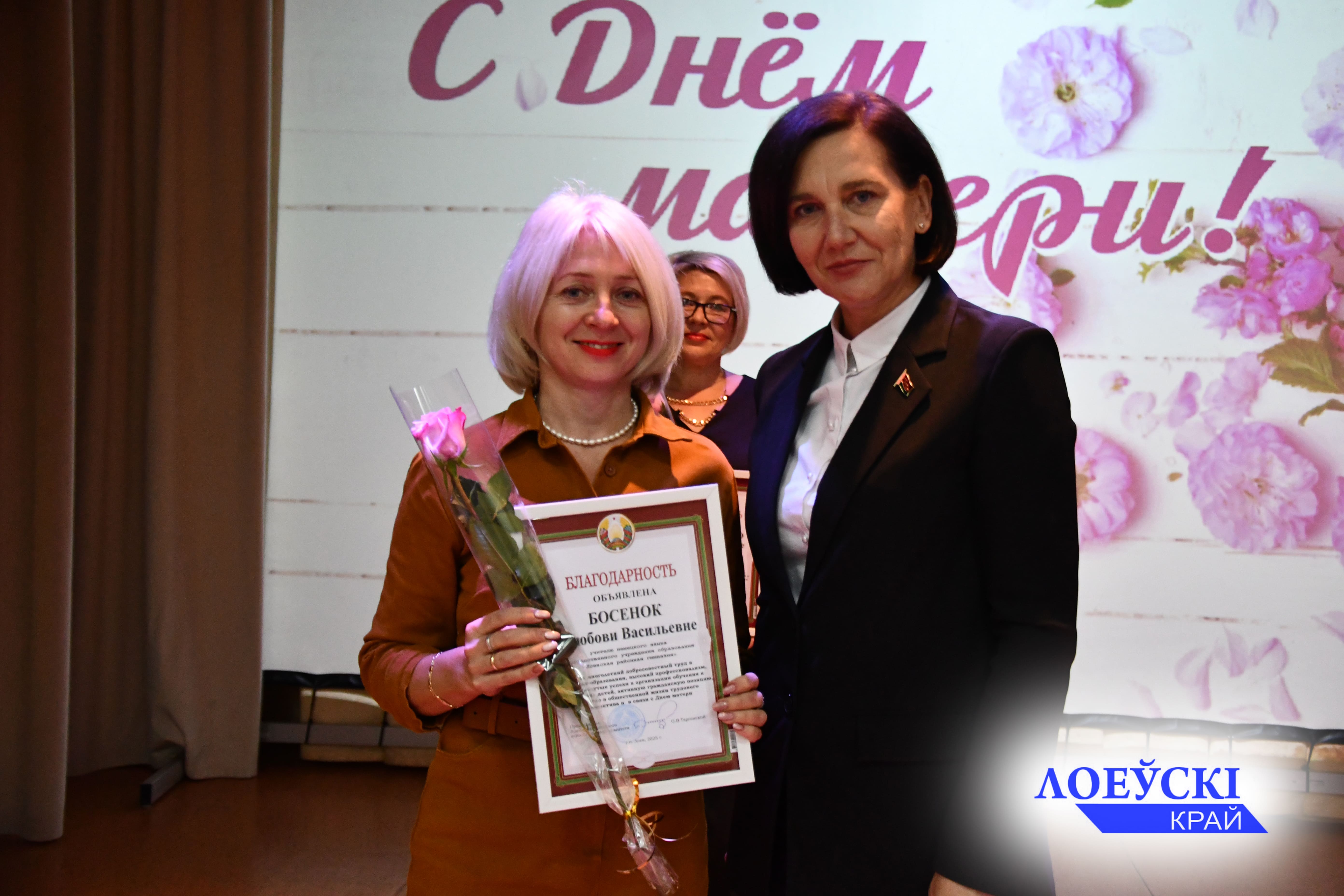 Мама сколько тепла и доброты в этом слове, она самый ценный человек в нашей жизни. Всегда поддержит и поможет в трудную минуту, даст совет и просто будет неизменно любить нас. Сегодня в этот замечательный осенний день в ГЦК прошло торжественное мероприятие, посвященное прекрасному празднику — Дню матери. Где наши самые любящие женщины принимали поздравления от руководства района и гостей праздника. Председатель районного Совета депутатов Ирина Пастухова поздравила всех женщин с Днем матери и вручила благодарности работникам разных сфер деятельности за многолетний и добросовестный труд, высокий профессионализм и достойное воспитание детей. Музыкальная программа мероприятия была довольно насыщенной, включала в себя выступления самодеятельных артистов учреждений образования Лоевщины, а также ГЦК. Сколько теплых и приятных слов было адресовано нашим милым женщинам?! Дорогие мамы! Пусть в этот особенный день ваше сердце наполняется любовью и благодарностью. Желаем вам здоровья, счастья и улыбок каждый день. Спасибо за вашу заботу и тепло!