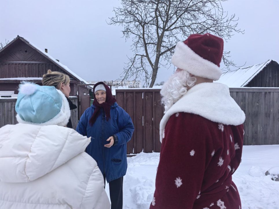 Кроме того, юноши и девушки навестили одиноко проживающую жительницу горпосёлка Марию Ивановну Ребенок, ветеранов педагогического труда Викторию Павловну Шарепо, Валентину Ефимовну Киржановну, Ирину Васильевну Коледа и Николая Викторовича Литвинова. Также ребята заглянули в гости к партнёрам — работникам Беларусбанка, отмечающим 4 января профессиональный праздник. Главной целью было не только поздравить с Новым годом и Рождеством Христовым, но и поделиться своим теплом и вниманием.