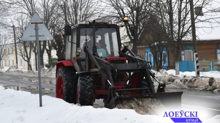 В расчистке дорог и прилегающих территорий задействована как спецтехника, так и ручной труд. Трактор эффективно удаляет наледь и накопившийся снег с трасс, а работники