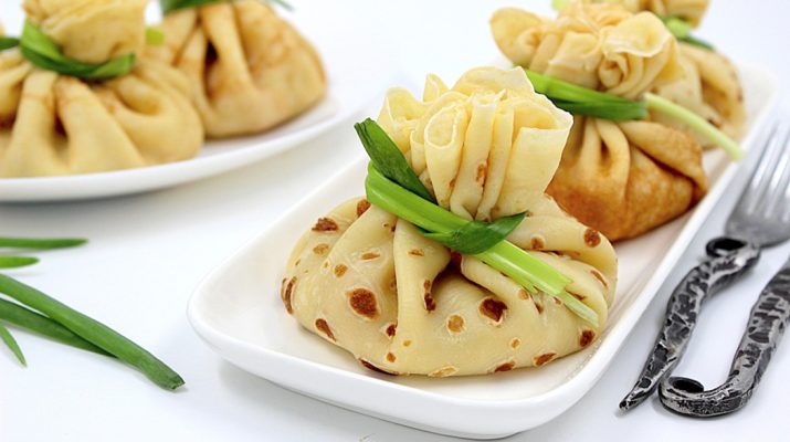 Мешочки из блинов с начинкой из курицы
