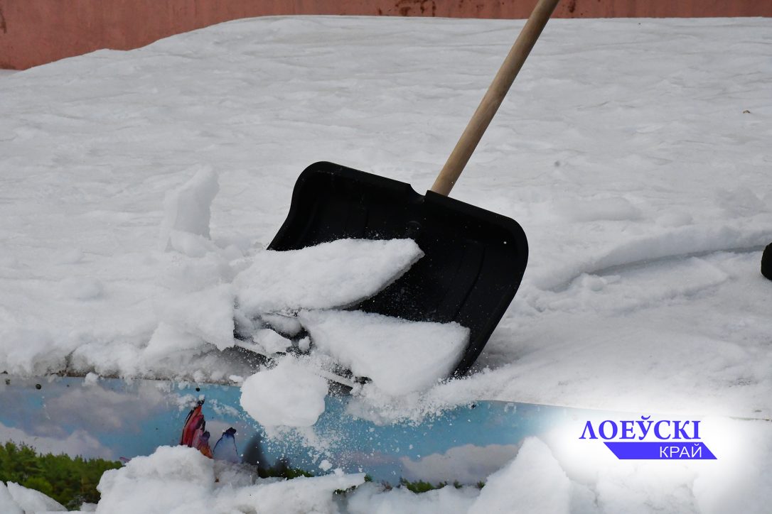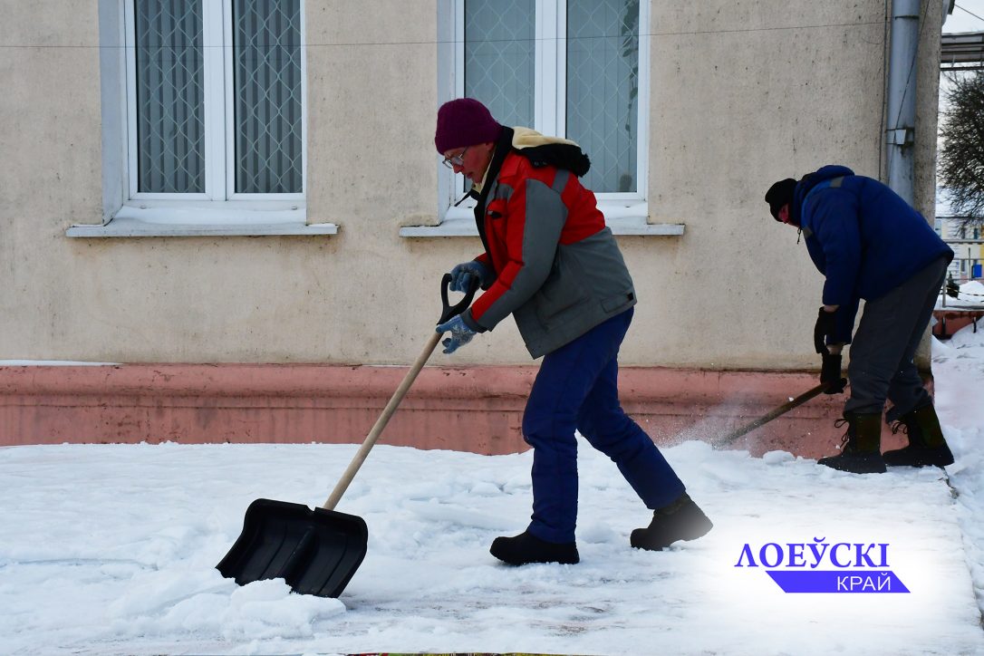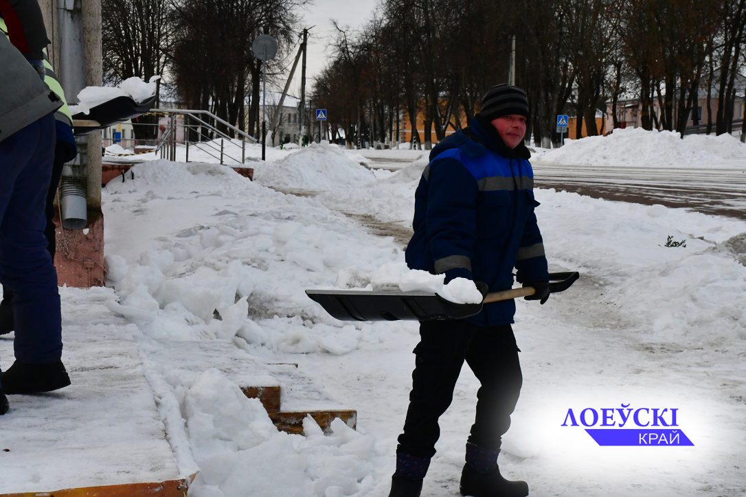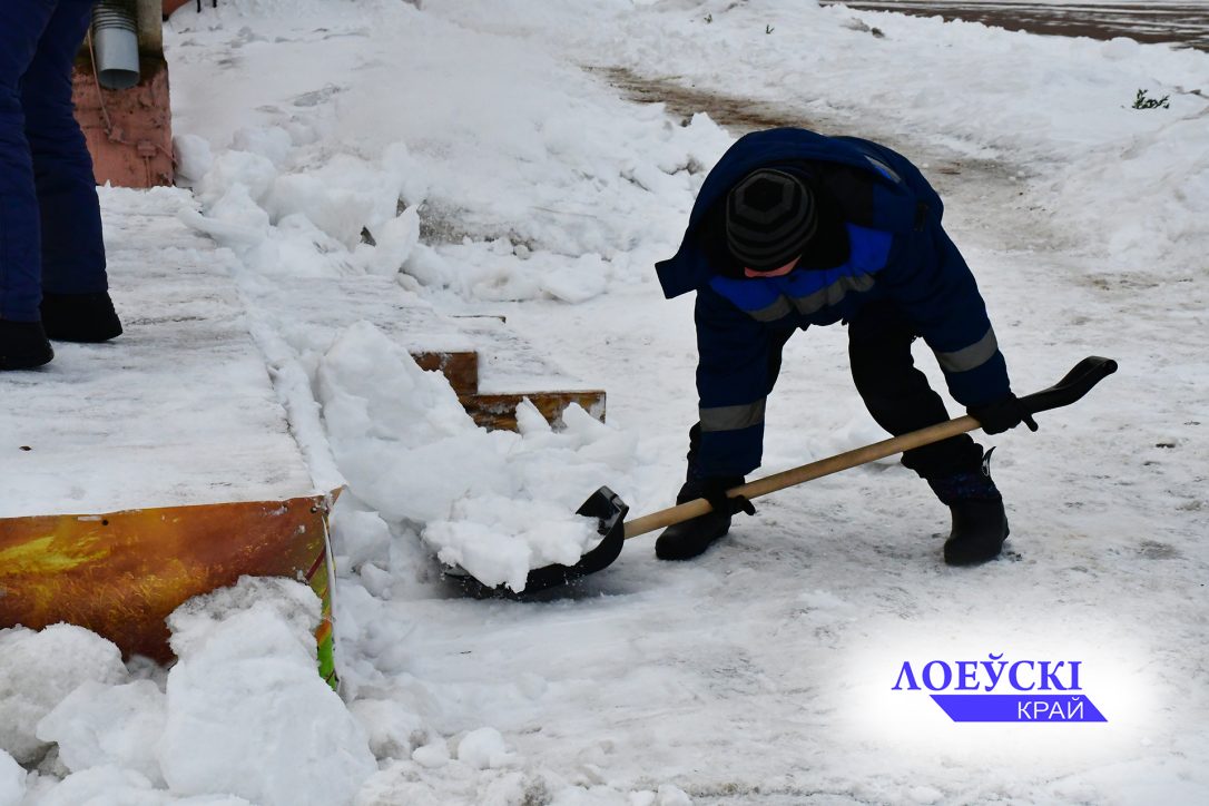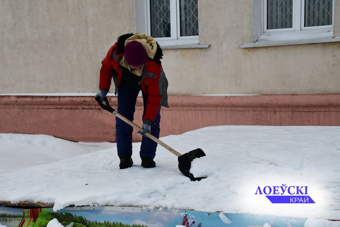Работники коммунальной службы района очищают от снега будущую сцену и прилегающую территорию. Активно убирая снежные глыбы, они готовят центральную площадь горпоселка к предстоящему празднику, которого жители ждут с нетерпением.