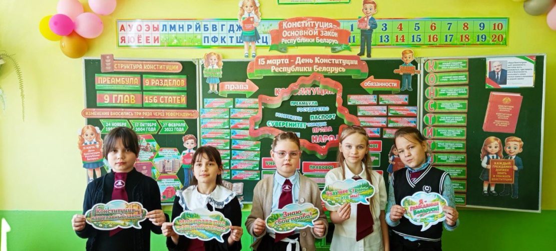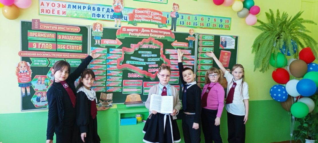 15 марта наша страна отмечает государственный праздник — День Конституции Республики Беларусь. В преддверии этой значимой даты в средней школе им. А.В. Козлова прошли единые уроки, посвященные Основному закону нашего государства.