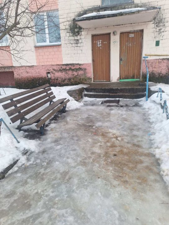 В публикации «В объективе — Синякова, 18» мы рассказывали о том, что в период гололёда не были обработаны прилегающие территории, тротуарные дорожки и входные группы некоторых многоквартирных домов. В качестве примера мы привели состояние дворовой территории Синякова, 18. Отрадно, что коммунальная служба на «подсказку» районной газеты отреагировала и произвела подсыпку опасных для пешеход мест песчано-соляной смесью.