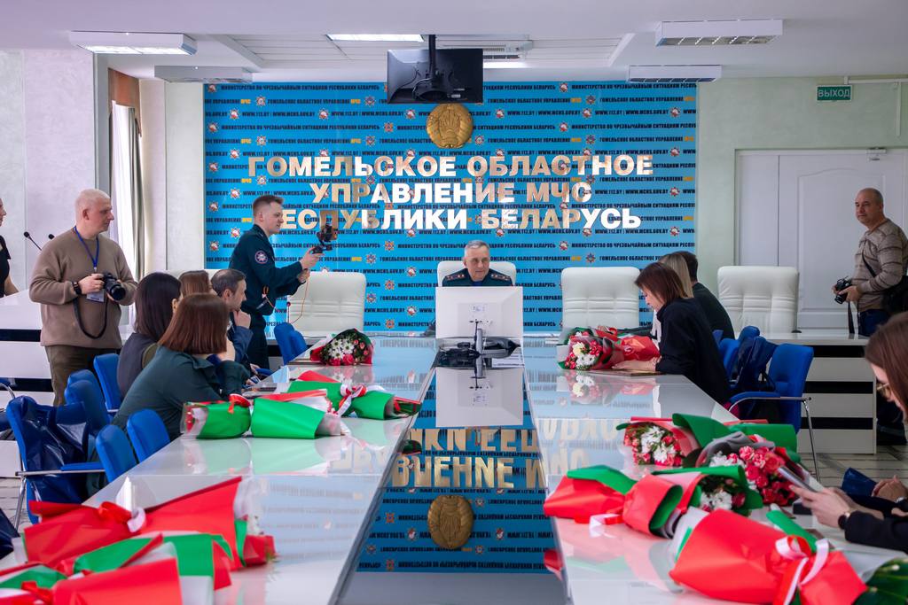 Завершилось торжественное мероприятие обсуждением важных событий, которые пройдут на Гомельщине, в том числе появление памятного мемориала в честь ликвидаторов последствий аварии на ЧАЭС в Сквере спасателей, а также благодарственными словами от журналистов в адрес работников МЧС за совместную работу.