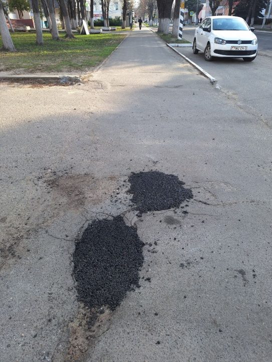 На пешеходной дорожке по улице Ленина неподалёку от гостиницы в асфальтобетонном покрытии за зиму образовались глубокие ямы, угрожающие безопасности прохожих. На днях работники бригады по благоустройству горпосёлка произвели здесь ямочный ремонт. Теперь пешеходам ничто не угрожает!