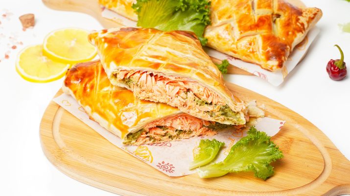 «Нежная рыба, запеченная в хрустящем слоеном тесте, с ароматом свежего лимона и зелени. Этот вкусный и аппетитный деликатес идеально подойдет для семейного ужина или