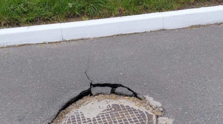 Ещё один опасный объект на проезжей части встретился в городском парке. На против административного здания межрайонного отдела принудительного исполнения в асфальтобетонном покрытии дороги значительно