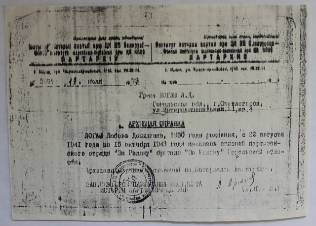 Публикация создана на основе архивных материалов фондов ГУК «Музей битвы за Днепр».