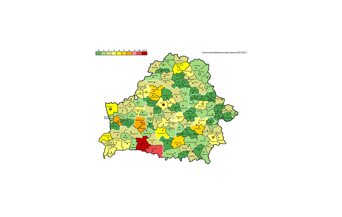 Карта размещена на сайте (https://gosenergogaznadzor.by/upload/karta/index.html) Госэнергогазнадзора. Она содержит информацию о несчастных случаях от поражения электрическим током в период с 2003-го по 2022 годы. При