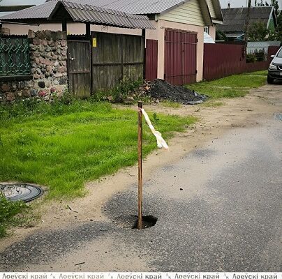 В объектив корреспондентов районной газеты попала огромная яма, образовавшаяся на проезжей части по улице Дзержинского (в районе дома №65). Здесь провалился асфальт. В тёмное